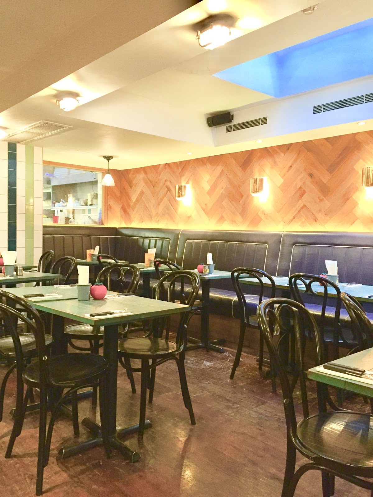 Am Morgen war mir eher nach einem süßen Frühstück (nach dem deftigen englischen Frühstück vom Vortag). Wir entschieden uns spontan für Farmer J, da wir einen Spaziergang machten und der Laden gleich um die Ecke war. Hier gibt es zwar auch herzhafte Sachen aber auch traumhaftes Granola mit Mangos und Joghurt. Zudem habe ich hier den besten Kaffee (black Americano) seit Langem getrunken und ich trinke quasi nie Kaffee. Die Portionen sind nicht sehr groß, weshalb wir zu zweit drei Granolas bestellten. Bezahlt haben wir hier wieder um die 20 Pfund für zwei Personen. Die Filiale sieht wunderschön „urban“ aus und es wirkt äußerst gemütlich. Farmer J: 107 Leadenhall St, London EC3A 4AA – station Aldgate – leider samstags und sonntags geschlossen